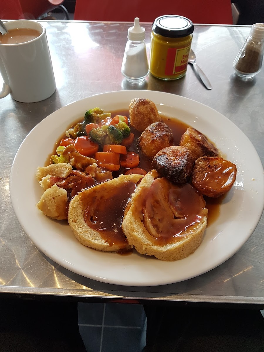 The menu at Wheelies Cafe is designed to satisfy all tastes, with classic favorites such as the Full English Breakfast, Steak Pie, and Shepherd's Pie. Whether you're in the mood for a substantial meal or a light bite, you’ll find something to indulge in. For a more traditional taste, try the Ham, Egg and Chips or Bacon and Onion Suet Roll with Roast Potatoes and Vegetables - perfect comfort food for any time of day. Their breakfast offerings are particularly popular, featuring a variety of choices like the Full Breakfast, which is served just right for those early mornings.